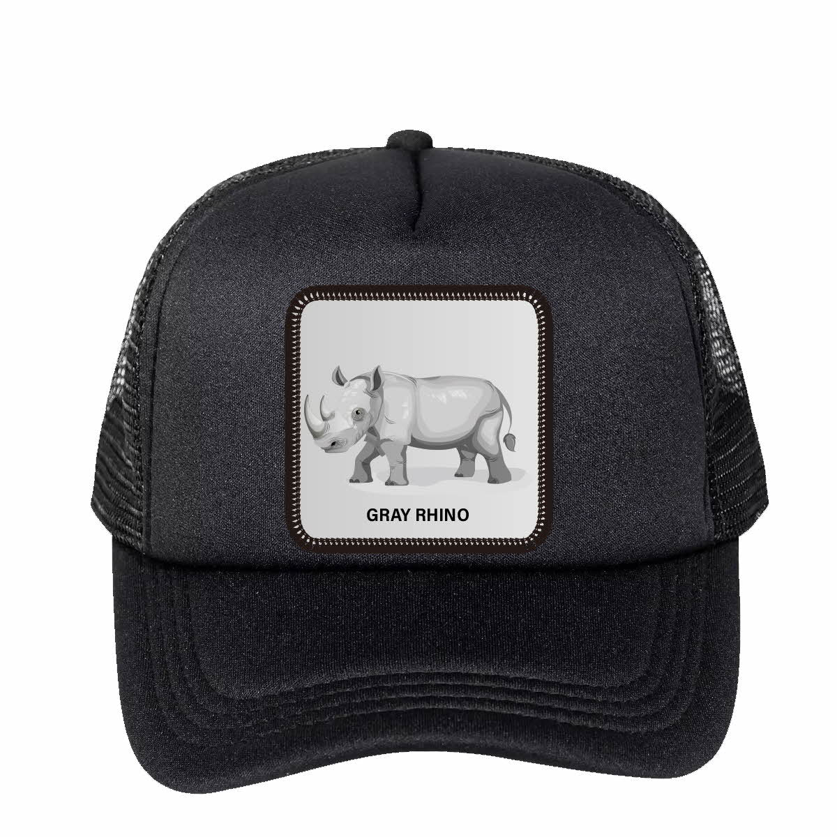 Gray Rhino Animal Patch Cap Trucker Mesh Hat H-1-04-32 - Black is backordered. It will be shipped when back in stock.