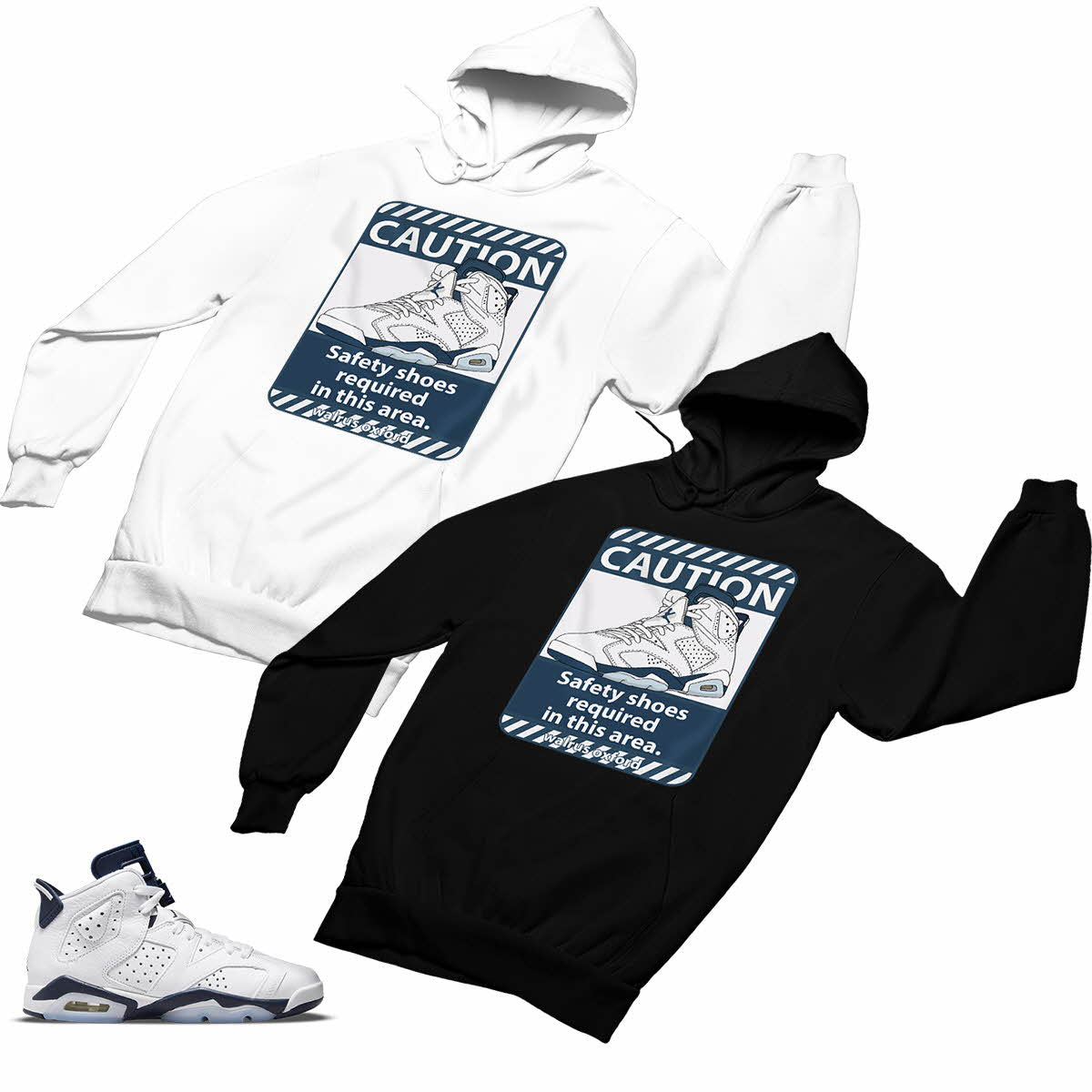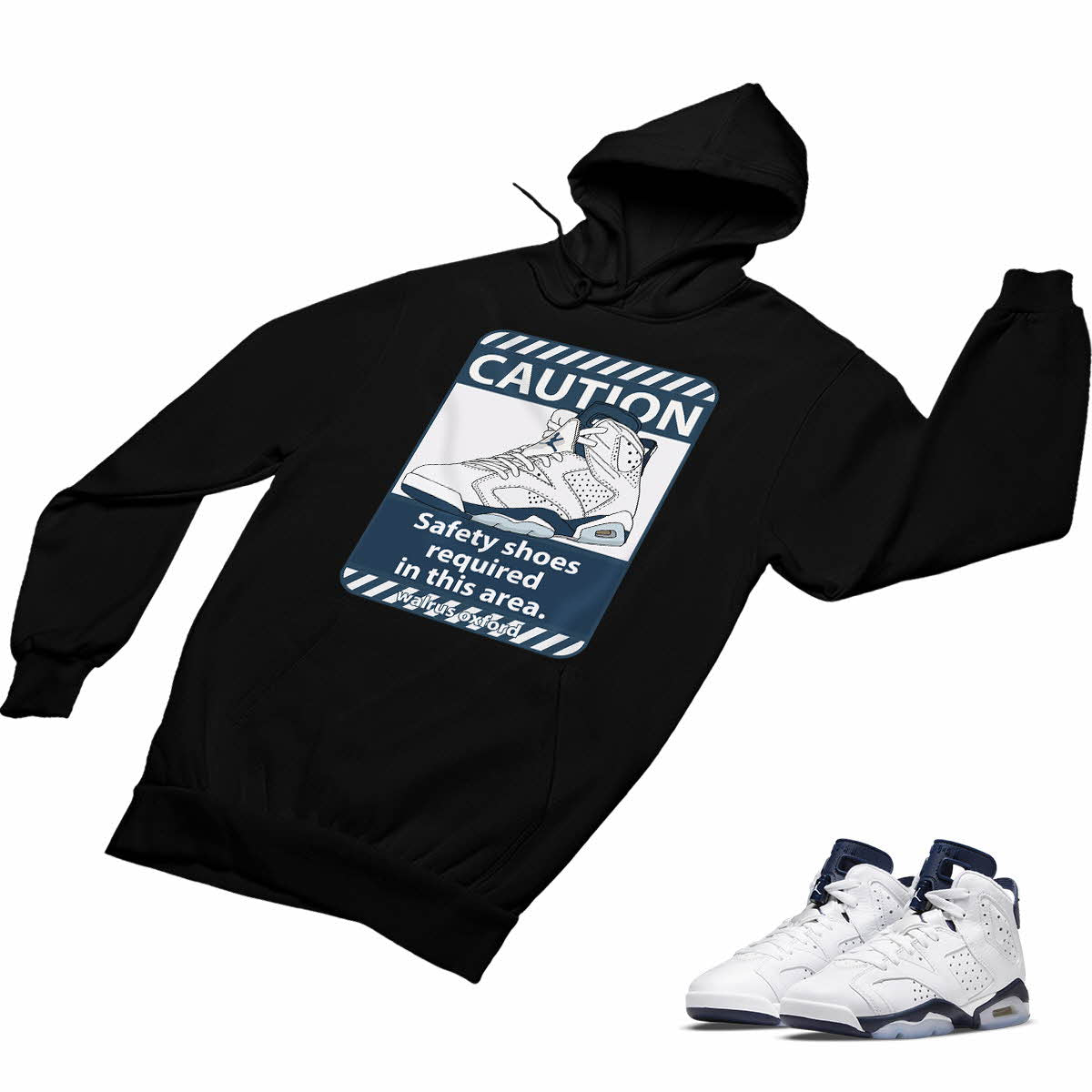 Jordan 6 Midnight Navy Matching Custom Designed Hoodies JD 6-31-18 - BLACK / S is backordered. It will be shipped when back in stock.